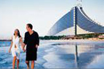 上午安排迪拜城市游,参观茱美拉清真寺,茱美拉海滩,七星级酒店外观,沿途经迪拜世界贸易中心,Emirates Towers,Burj Dubai,赛骆驼场,茱美拉酒店。下午体验阿联酋特有的沙漠探险——冲沙,并在月光下享用阿拉伯风味的烧烤晚餐。